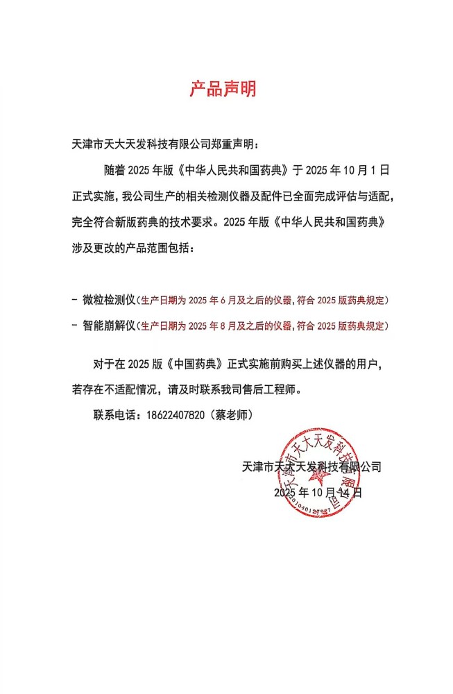 | 尊敬的各界朋友們: 歡迎您進入天津市天大天發(fā)科技有限公司的網站進行瀏覽,首先感謝各界朋友多年來對天大天發(fā)藥品檢測儀器和分析儀器的關心與支持! 天津市天大天發(fā)科技有限公司是通過ISO9001質量管理體系認證、ISO14001環(huán)境管理體系的認證的高新技術企業(yè),是專業(yè)的藥檢儀器和分析儀器的制造廠商。 我們的產品包括藥品溶出儀系列、微粒檢測儀系列、內毒素檢查儀系列等40余種產品,主要產品覆蓋了全國所有省區,部分產品已進入海外市場。公司在藥檢領域樹立了良好的品牌形象,贏得了廣大用戶的贊譽。 公司將更好地適應瞬息萬變的市場,增強企業(yè)的核心競爭力。抓住全球經濟飛速發(fā)展的歷史性機遇,以創(chuàng)新精神進行新的創(chuàng)業(yè)。以高起點、高速度、高效率創(chuàng)造出中國藥品檢測儀器和分析儀器領域中的品牌形象,立足中國,走向國際。 我們熱切希望您成為天大天發(fā)科技有限公司的合作伙伴! |